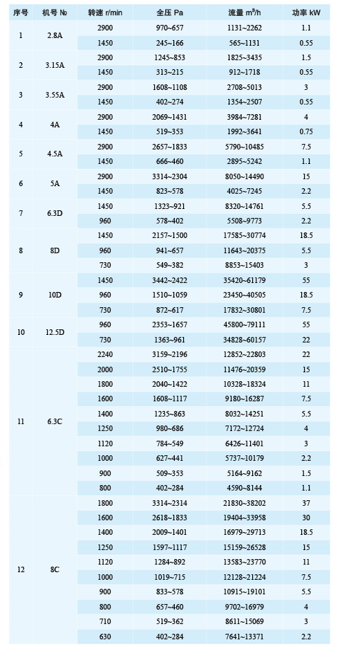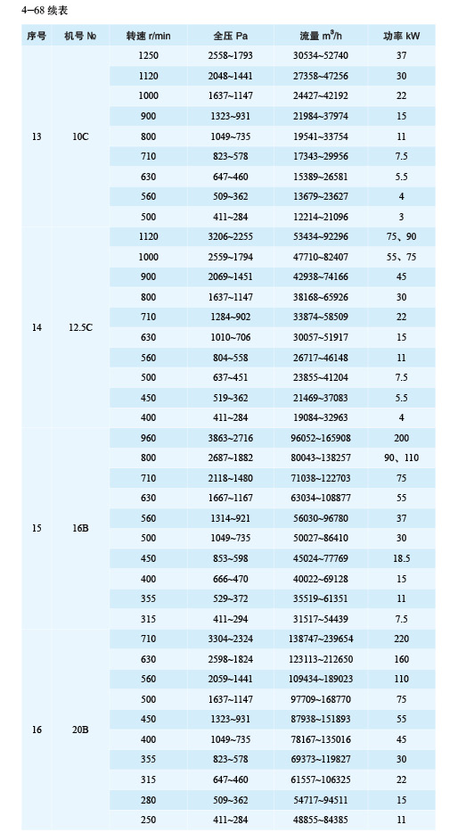4-68通風(fēng)機(jī)和引風(fēng)機(jī)均為單吸入,有8#、9#、10#、11.2#、12.5#、14#、16#共七個(gè)機(jī)號(hào)。每種風(fēng)機(jī)均可制成右旋或左旋兩種形式。風(fēng)機(jī)的傳動(dòng)方式均為D式,電機(jī)與風(fēng)機(jī)聯(lián)接采用彈性聯(lián)軸器直聯(lián)傳動(dòng)。
